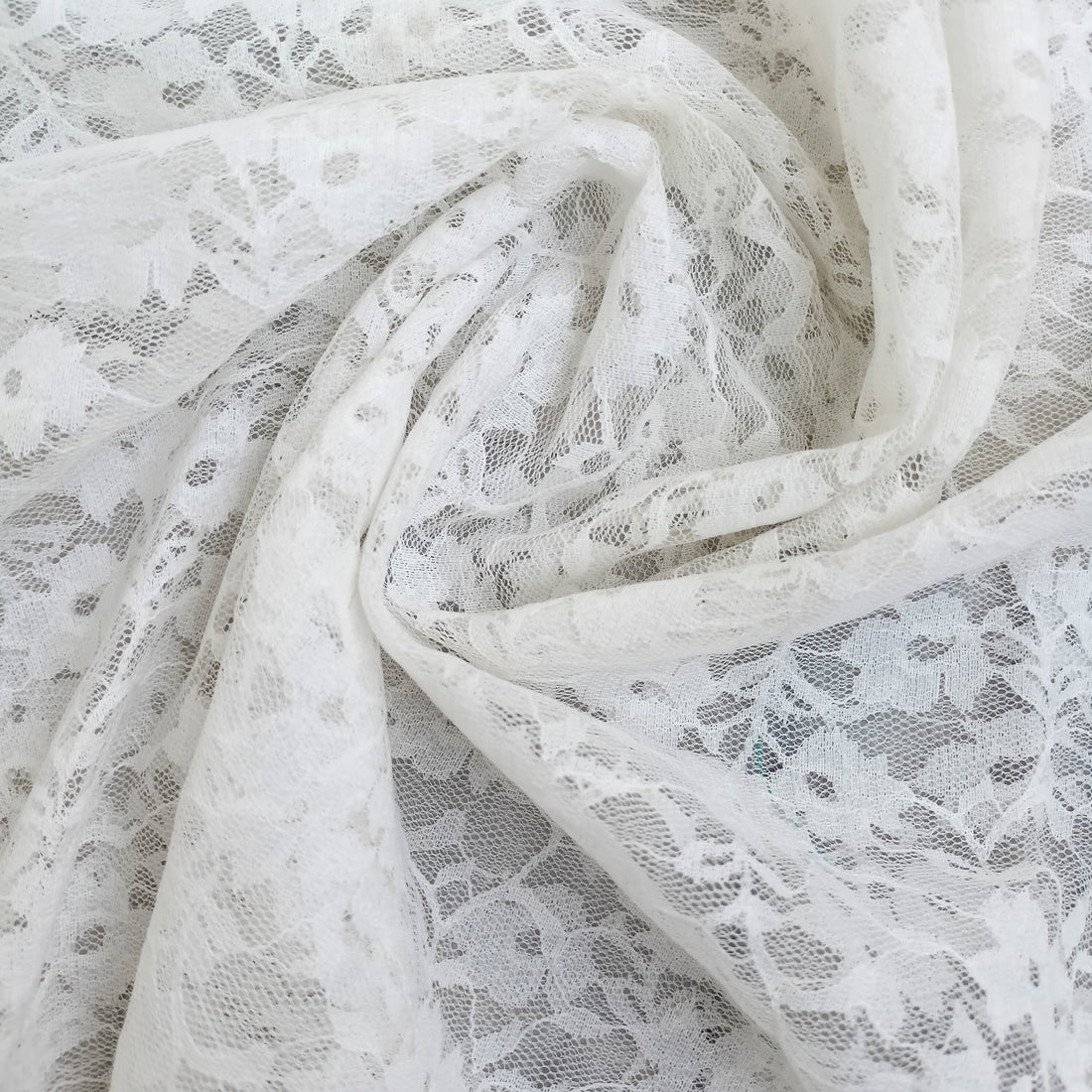 Off White Tulle Floral, Floral Tulle Lace Fabric in Off-White, White Tulle Floral Lace Fabric, Off-White Tulle Bridal Lace By The Yard, Floral Lace Fabric for Wedding Bridal Dress Fabric