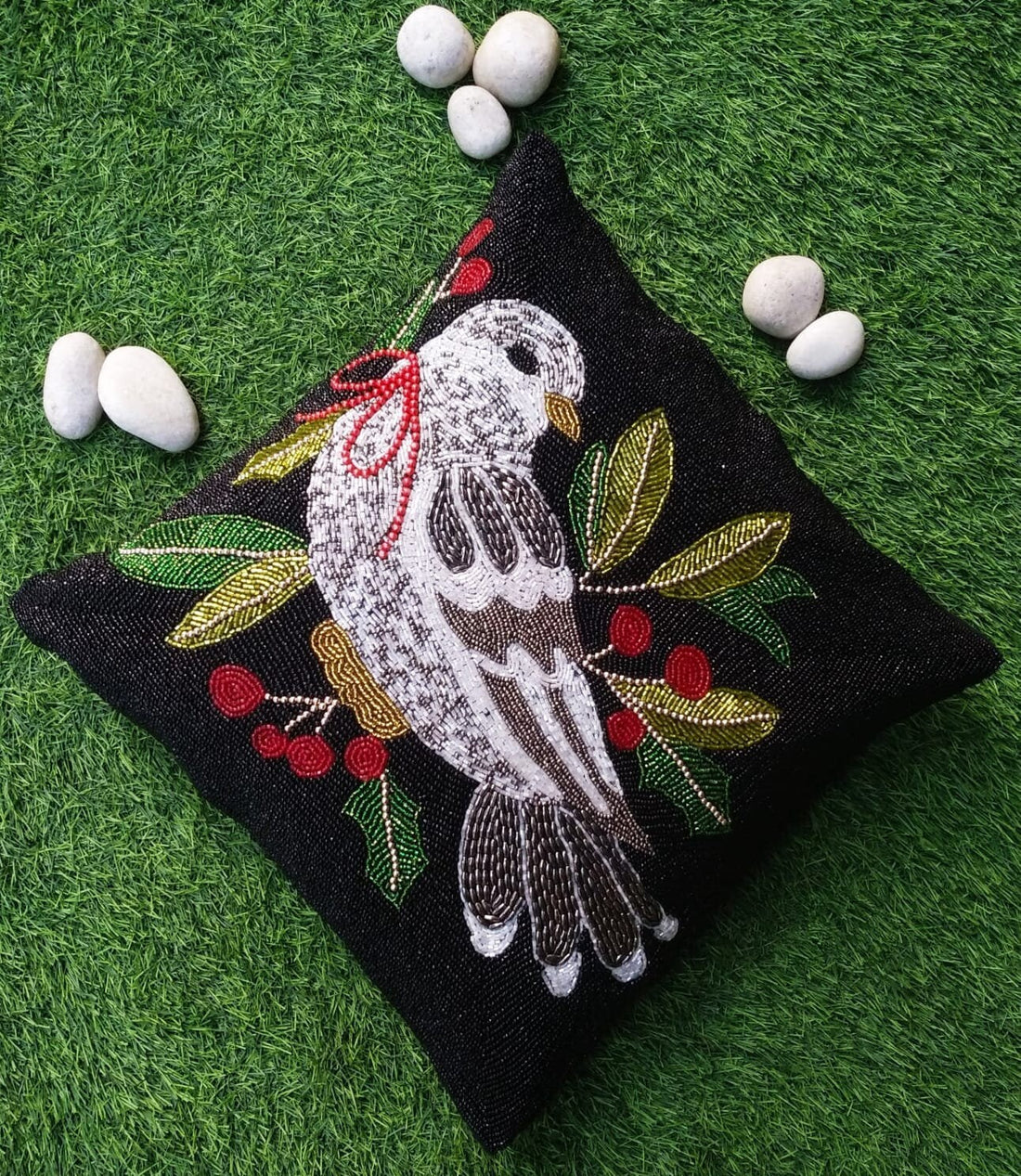 🌷----------------------------------------------------------------------------------------------🌷 A pillow cover with beautiful DOVE bird beaded embroidery signify the calmness and peace...