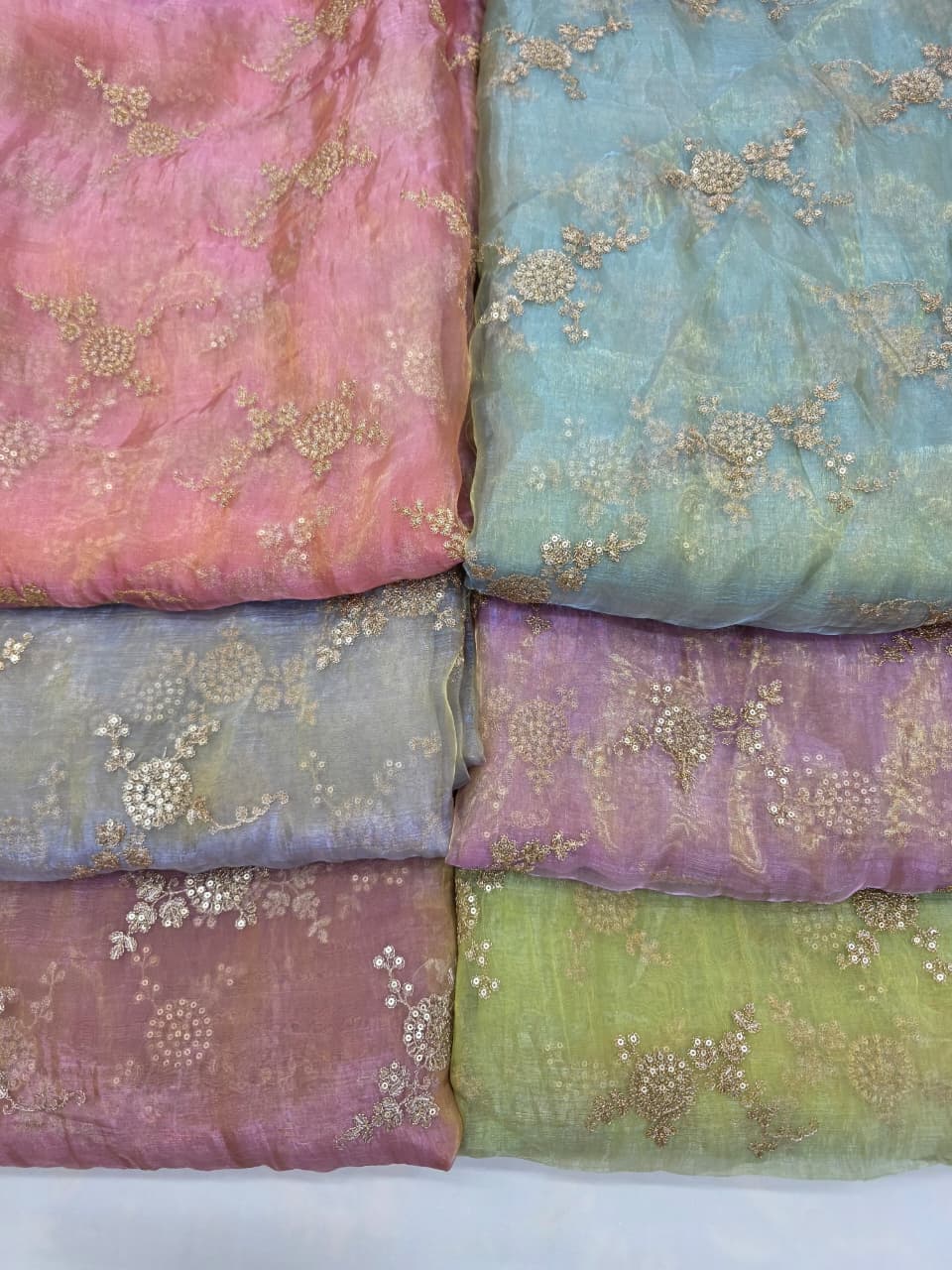 Elegant Glass Organza Embroidery Fabric, Lightweight Organza Embroidery Fabric For Party, Glass Organza Premium Embroidery...