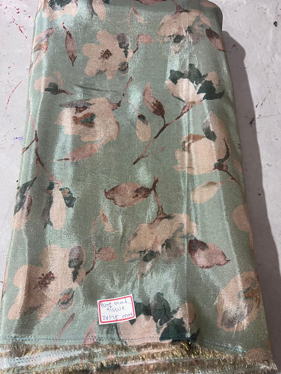Premium Viscose Tissue Zari Digital Print Fabric, Viscose Tissue Zari Digital Print Fabric, Soft Viscose...