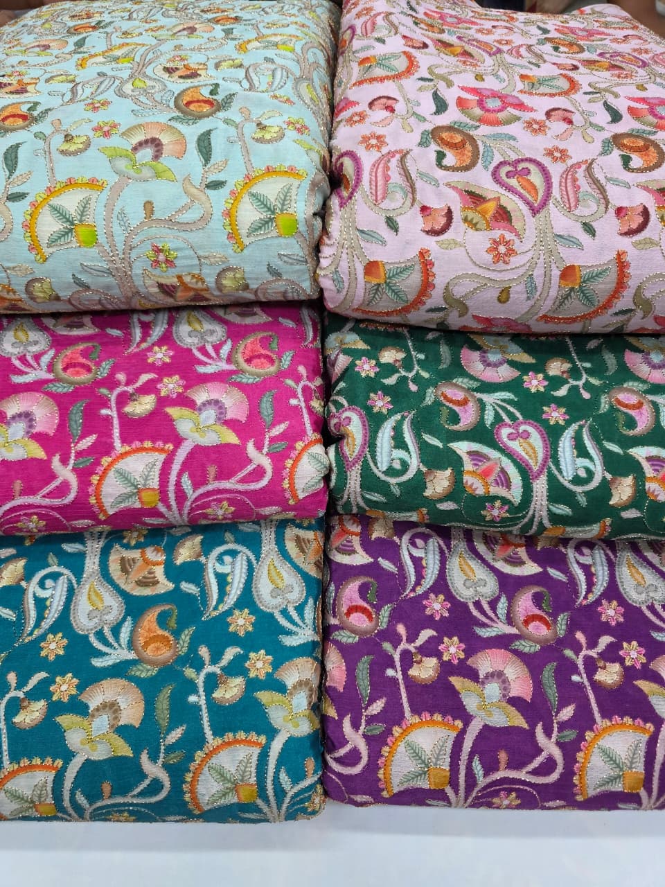 Chinon Embroidery Work Fabrics, Beautiful Chinon Fabric, Intricate Multi-color Thread Embroidery Work Fabrics Elegant Floral...
