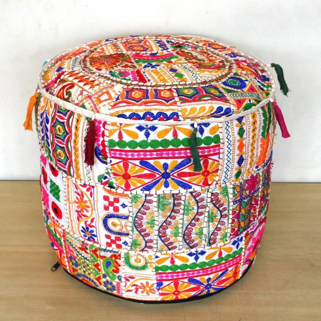 Indian Embroidered Patchwork Ottoman Pouf Handmade Pouf Decoration Pouf, Mudda Cover Pouf Ottoman Floor Pouf...