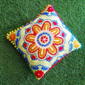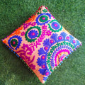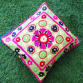 20X20 Indian Handmade Embroidered Colorful Floral Ruffle Throw Pillow Case, Ethic Embroidered Pillow cover Gift Item- Cover Only Set Of 4Pcs
