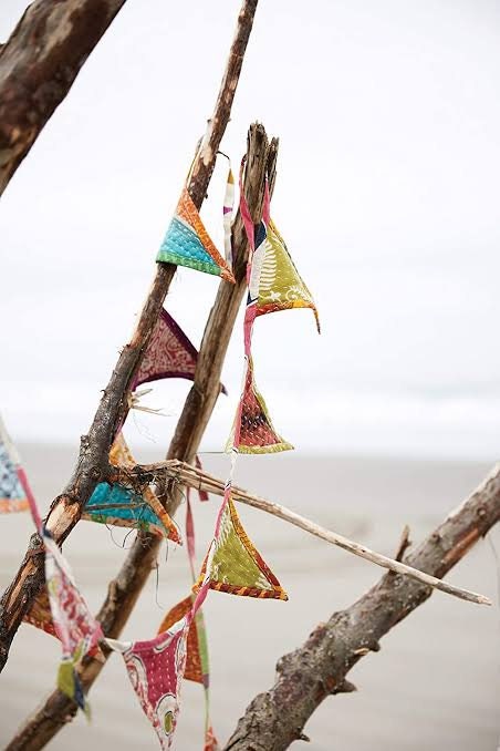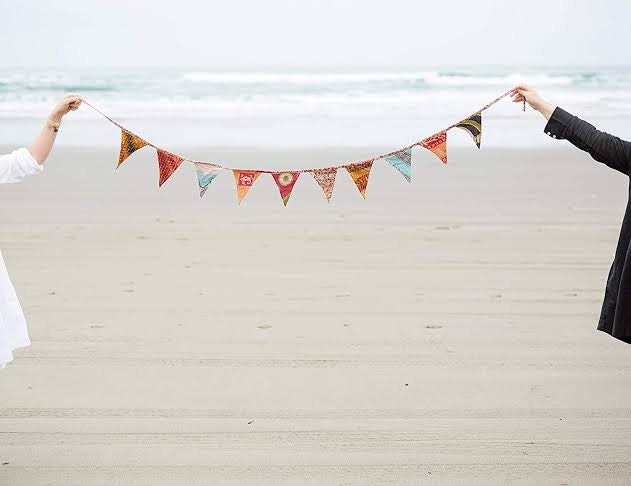 Add a burst of color to your events or spaces with our handmade outdoor bunting garlands crafted from vibrant recycled Kantha quilt fabric. These eco-friendly, one-of-a-kind garlands are perfect for weddings, garden parties, festivals, or as charming home décor.