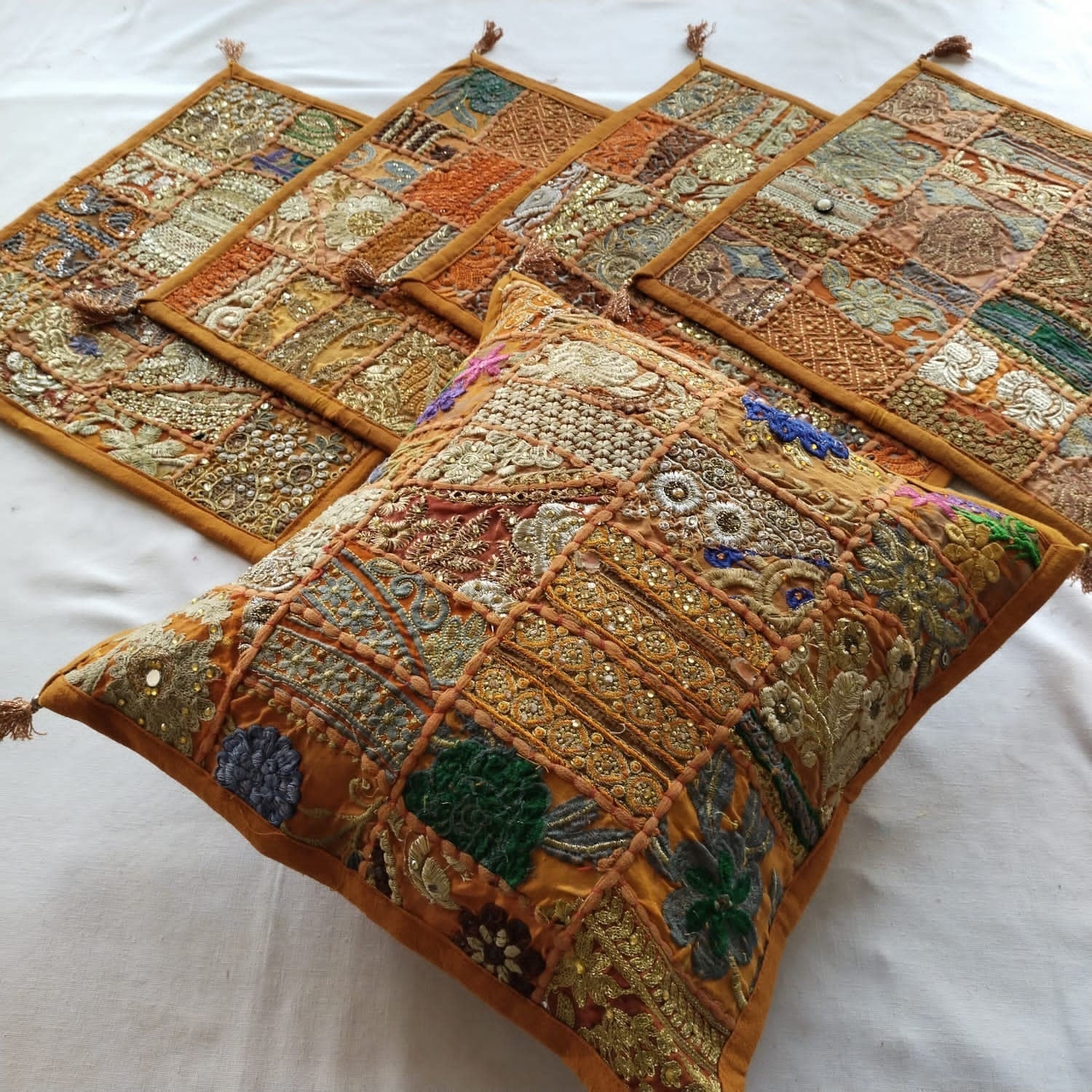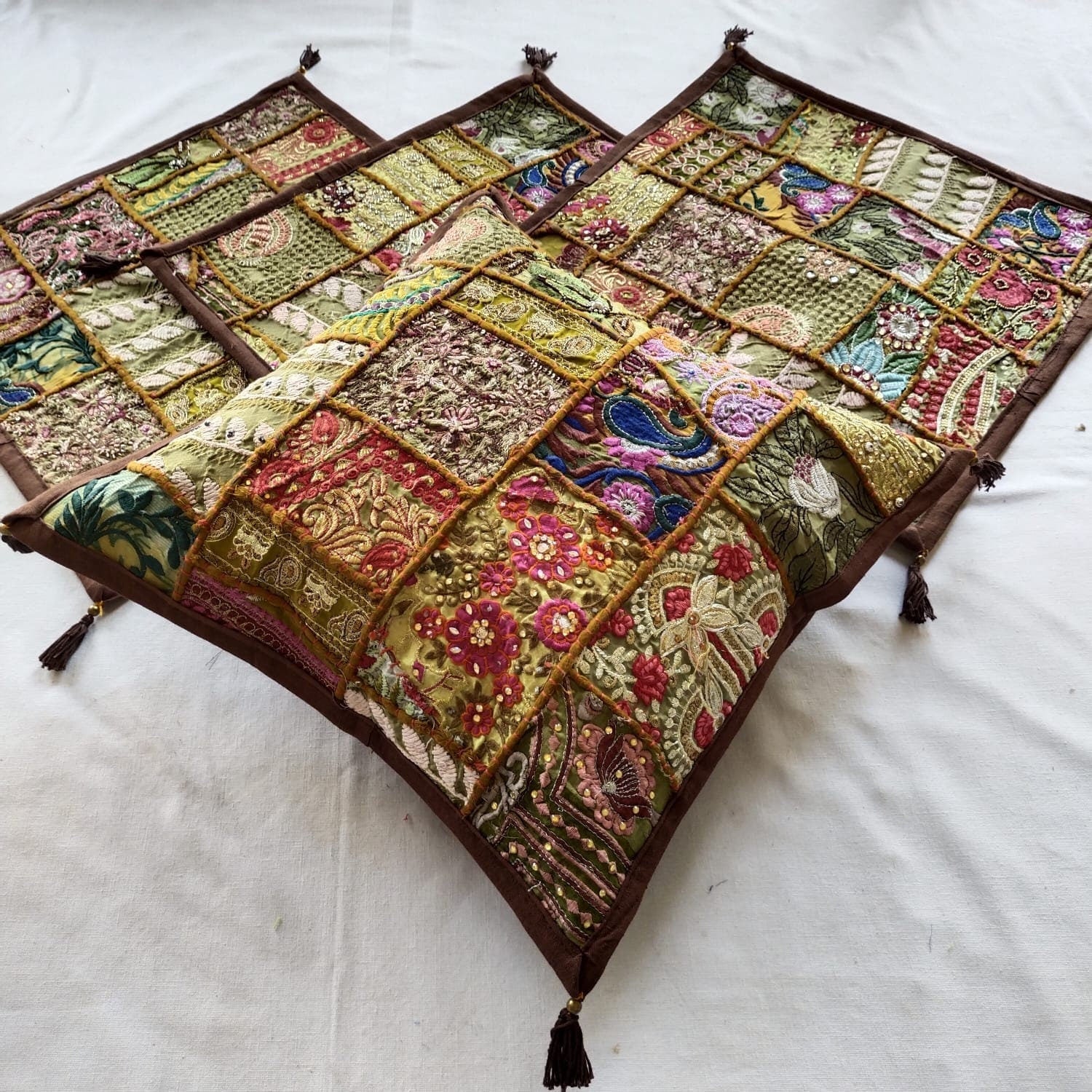 Indian Embroidered Kantha Pillow Cover, Patchwork Embroidery Cushion, Handmade Throw Pillow Cover, Handmade Kantha Pillow Cover Case, Fancy Cushion Decorative Case, Kantha Cushion Gift Item- Cover Only Set Of 10Pcs
