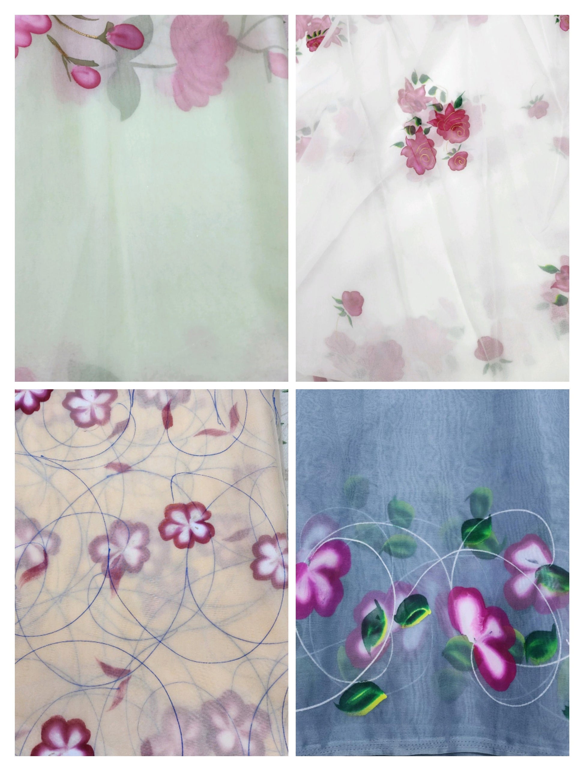Organza Fabric Flower, Printed Fabric by The Yard, Rose Flower Print Organza Faux for Wedding Dress Organza Print Fabric by Meter