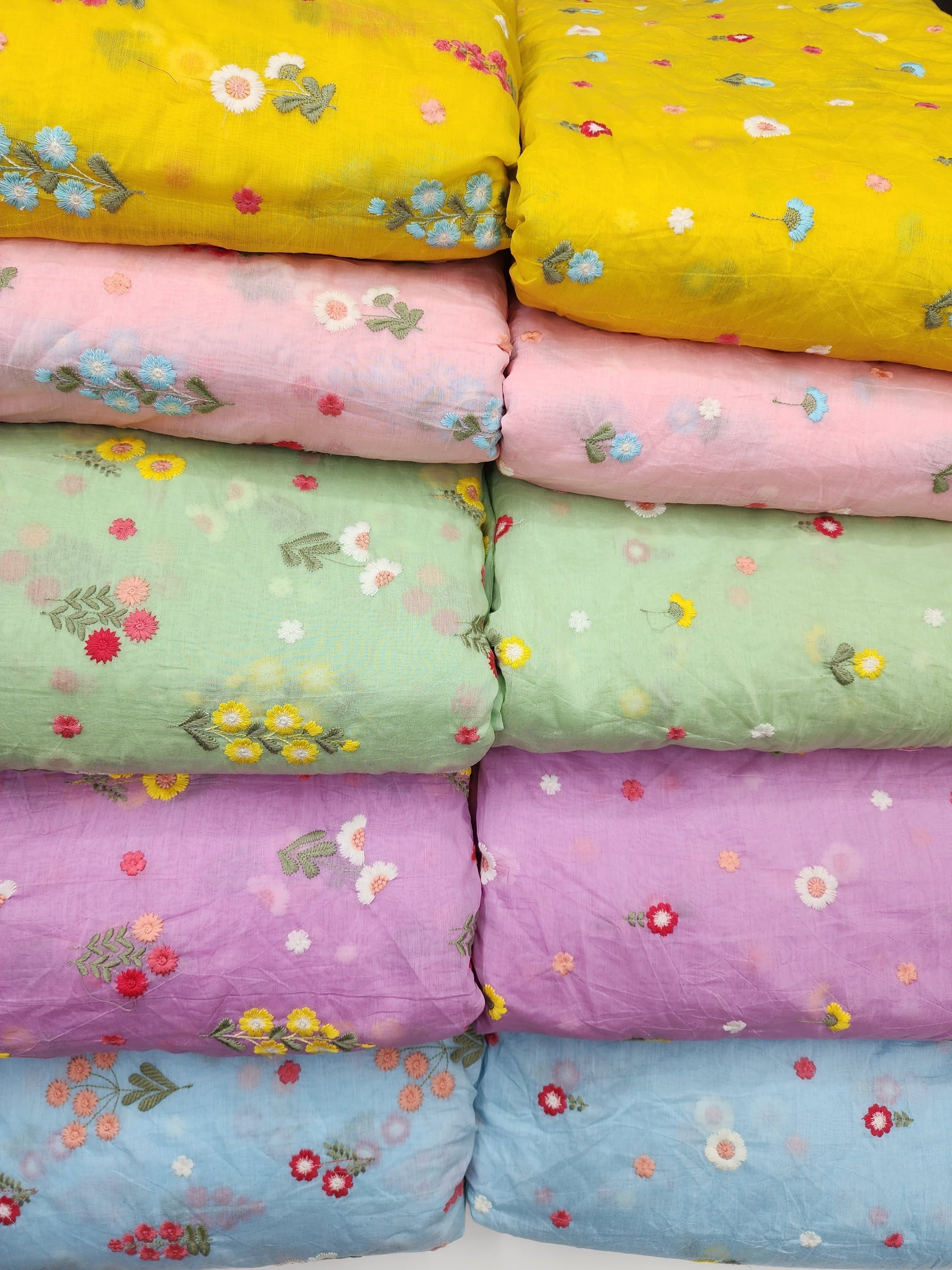 We have wide range of fabric like Pure Mull Chanderi Butta Multi Thread Work, Polyester, Nylon, linen, etc. We can provide you any type of fabrics from India, please conversation with me.