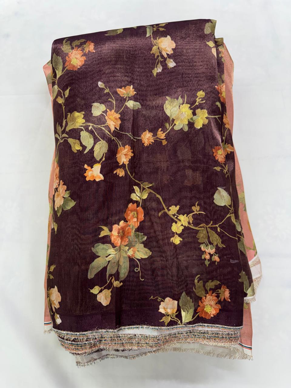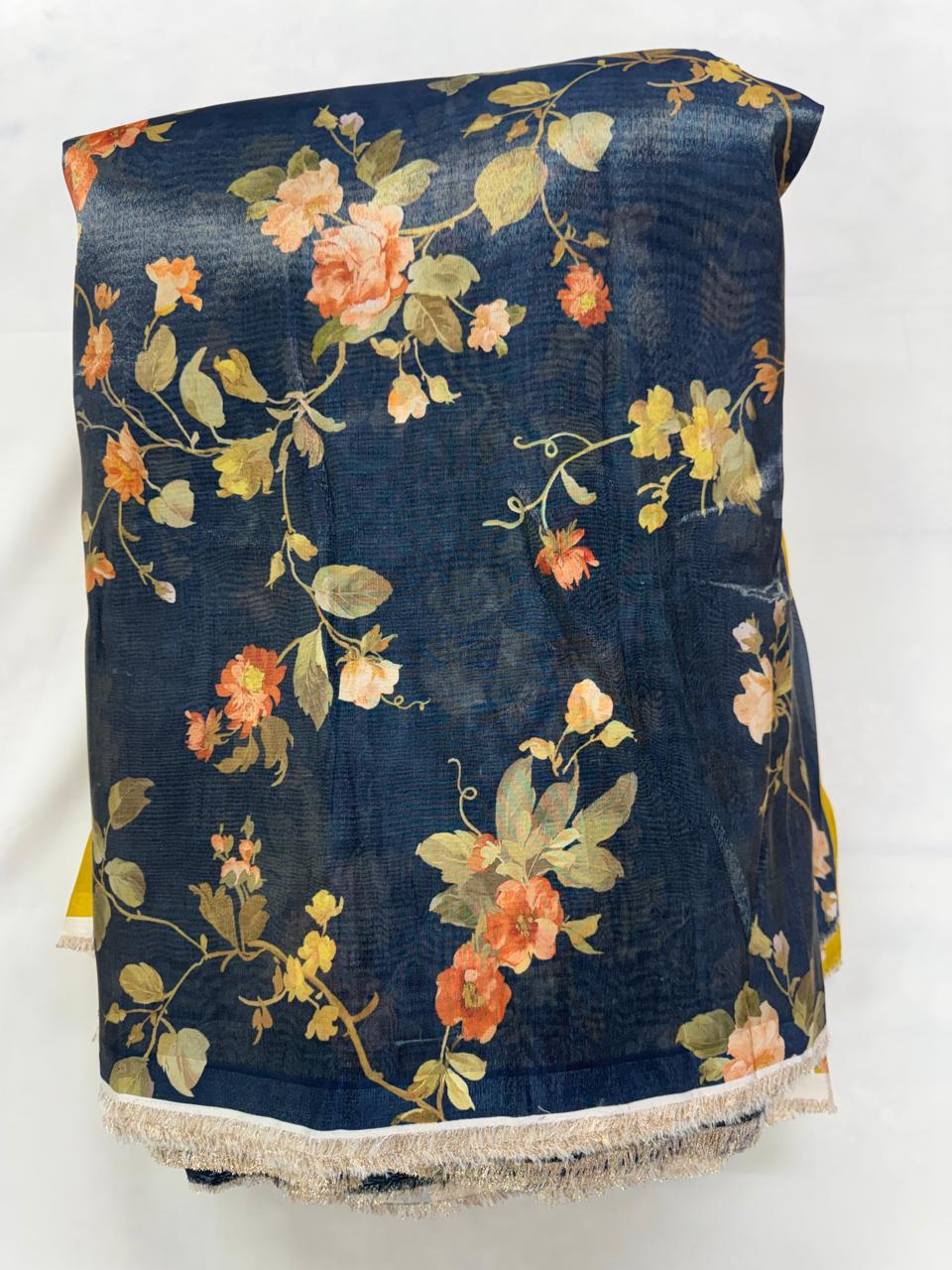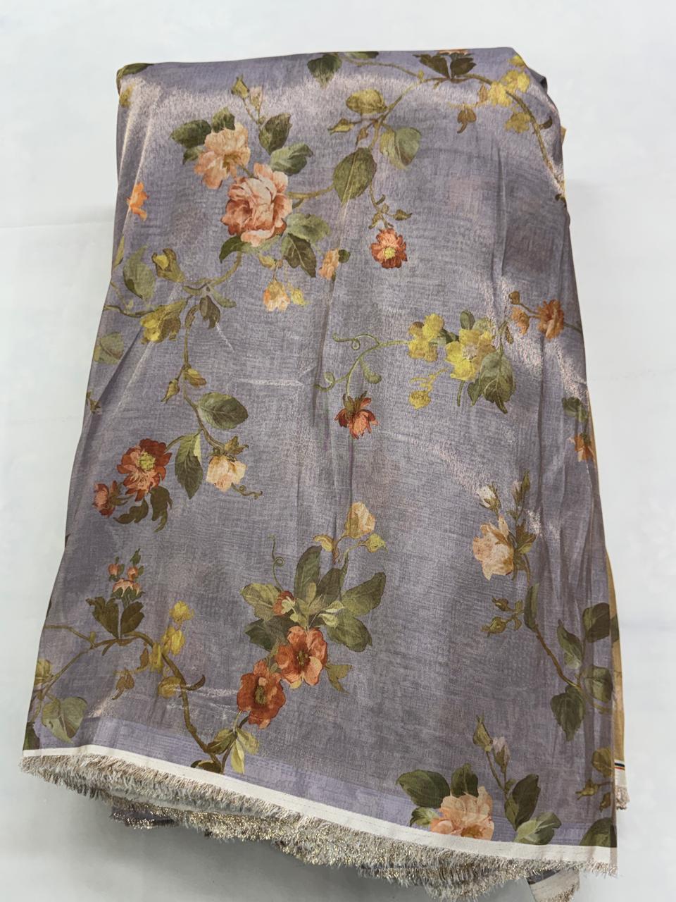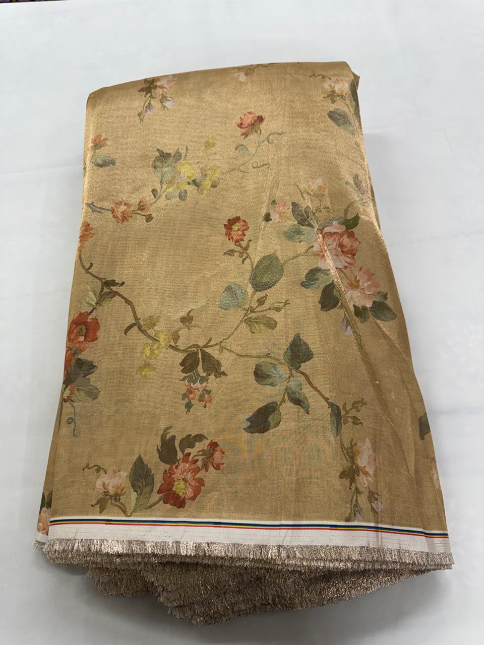 Tissue Zari Digital Print Fabric, Tissue Zari Based Fabrics, Tissue Zari Digital Printed, Tissue Zari Woven Fabric, Floral Digital Printed Zari, Digital Printed Tissue fabric, Pure Zari Tissue Handwork Floral Embroidery 44 Inch Width