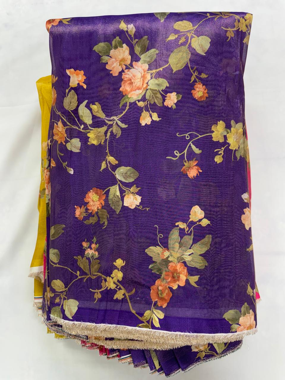 We have wide range of fabric like Pure Tissue Zari Digital Print Fabric etc. We can provide you any type of fabrics from India, please conversation with me.