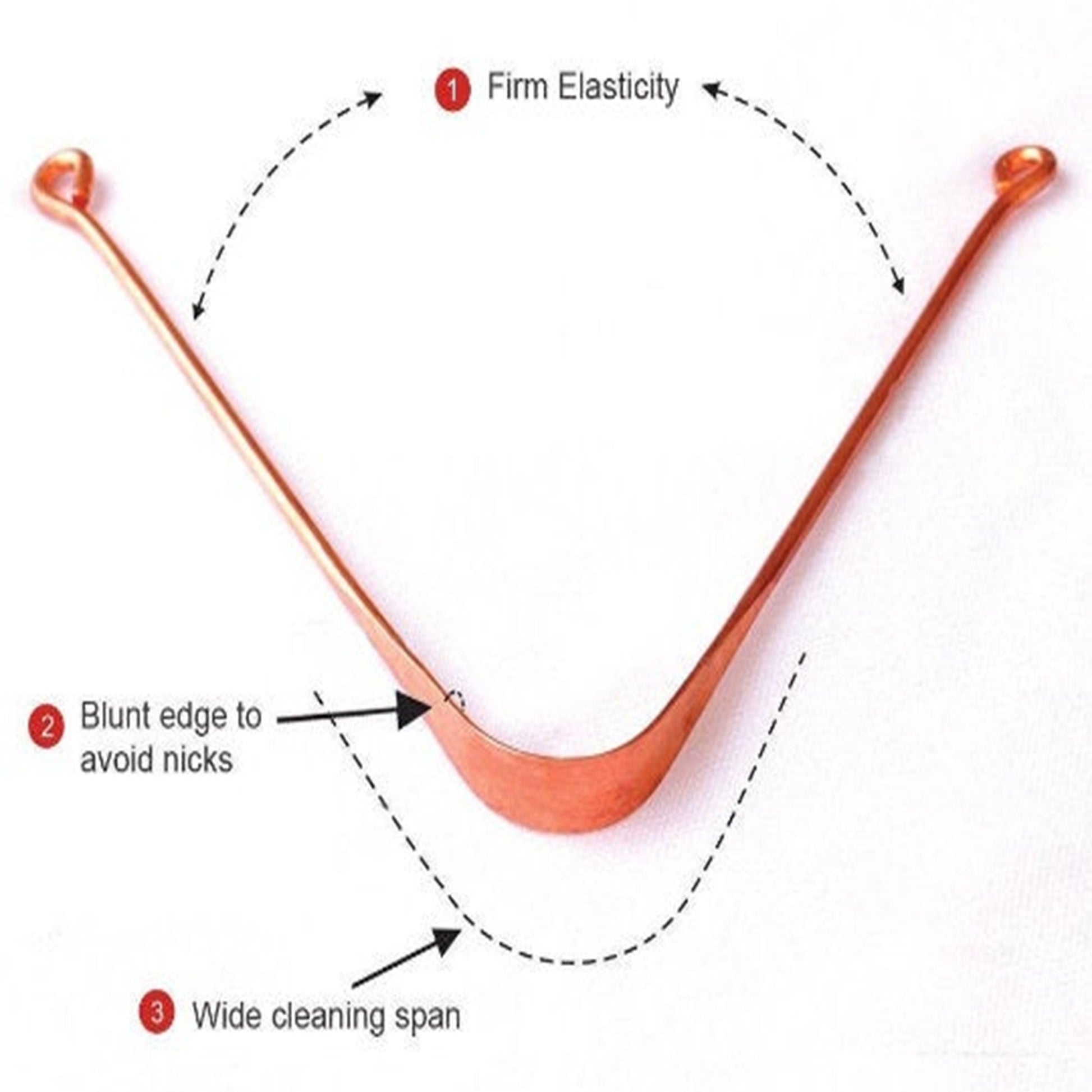 Our copper tongue scrapper removes bacterial buildup as you gently glide it across the surface of your tongue, scraping from the back to the front. Removing plaque bacteria is the key to getting your fresh breath back!