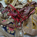 Selected ribbons, mesh, burlap, lace, organza, tulle and/or trims and embellishments- perfect for quilting, junk journals, snippets, scrapbooking, and art DIY projects.
