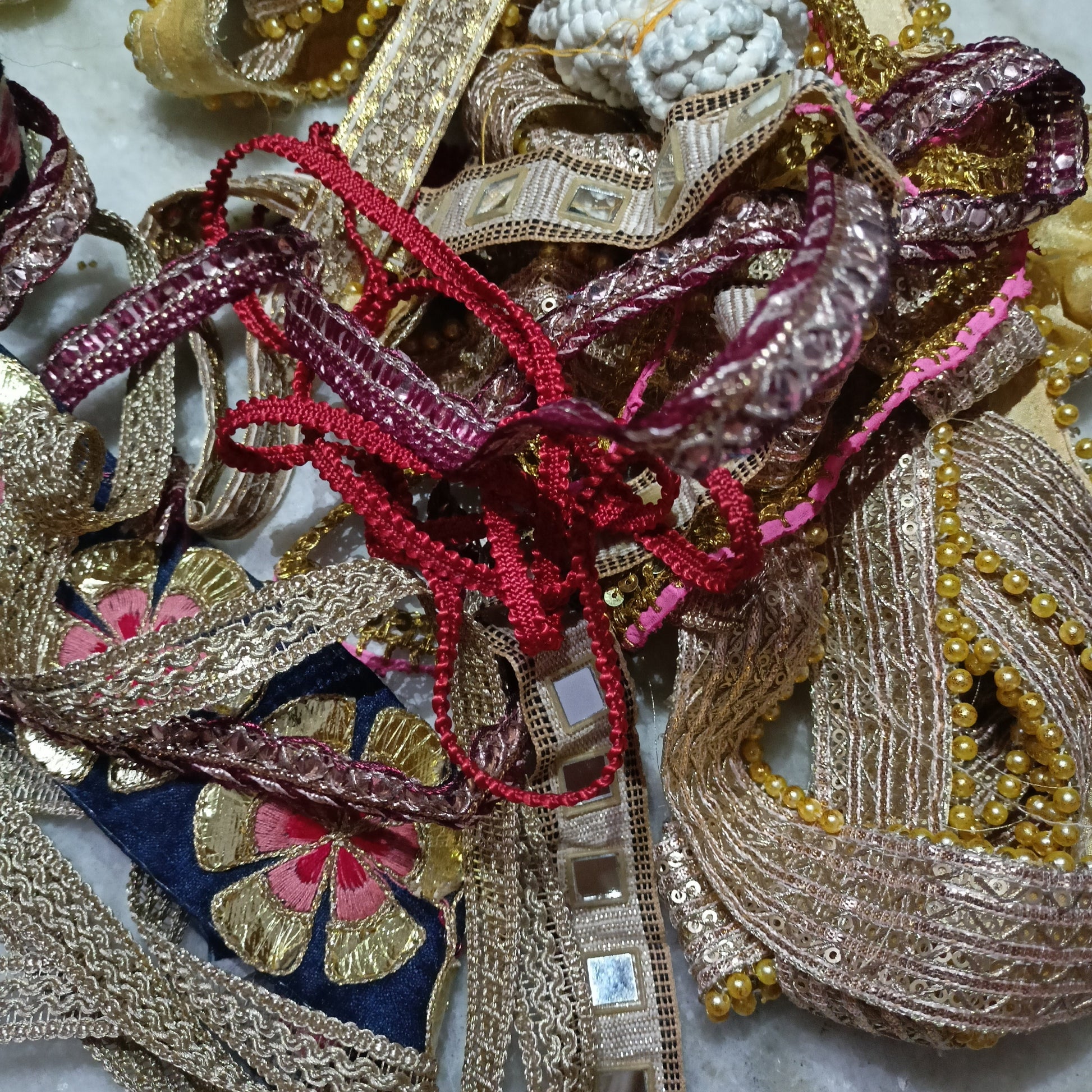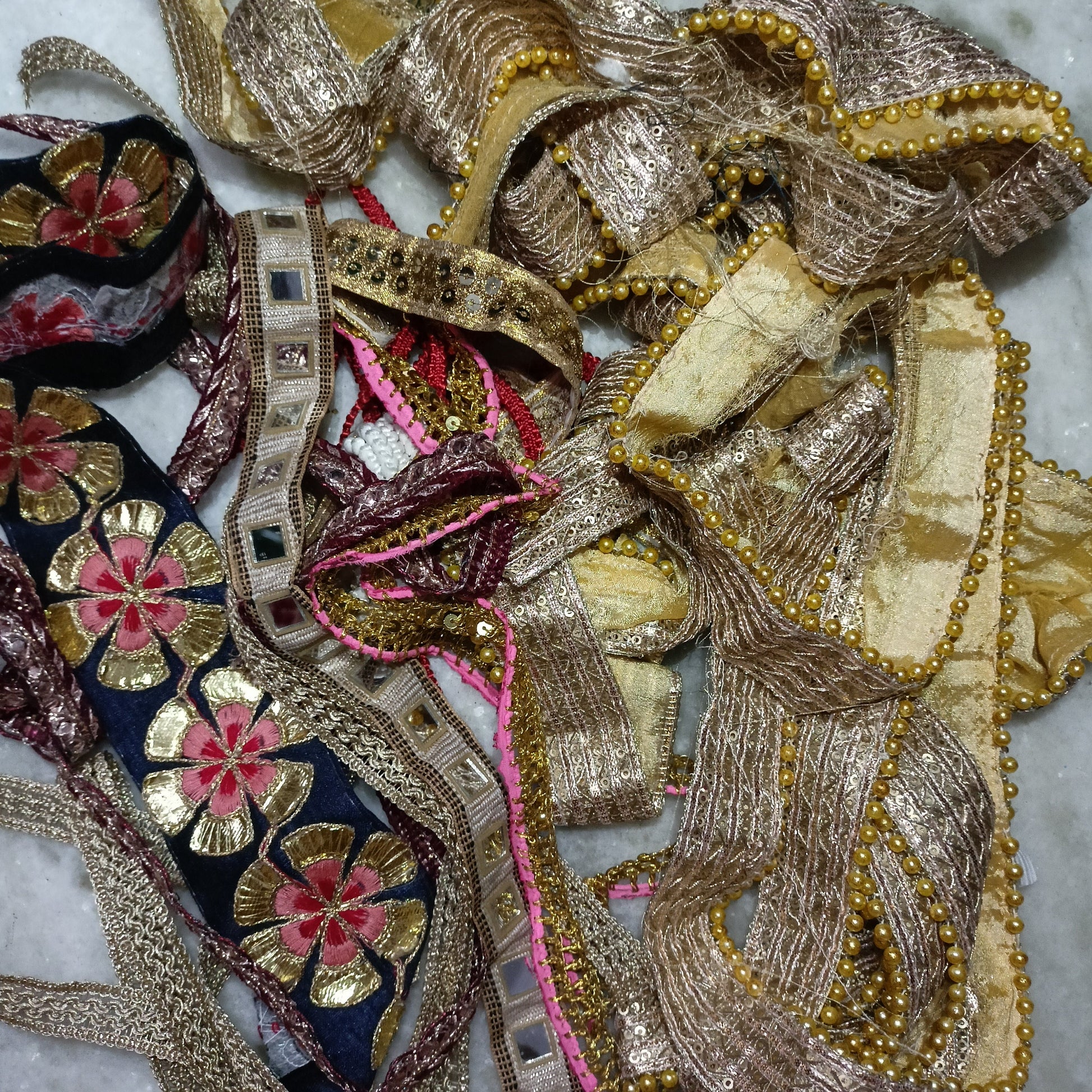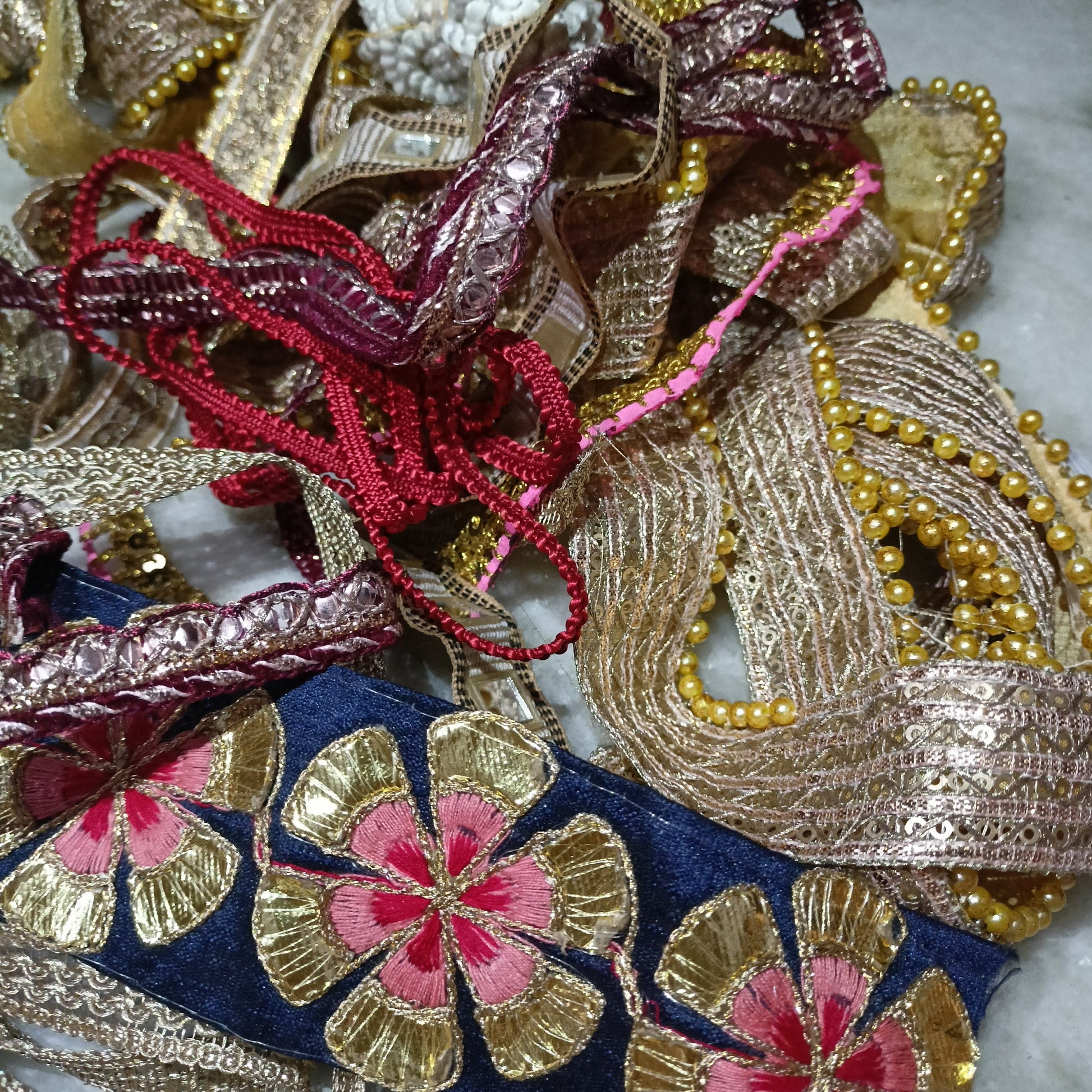 Mixed Golden Embellishment Trims | Sequin, Pearl, Embroidered Net, Sari Dupatta Borders