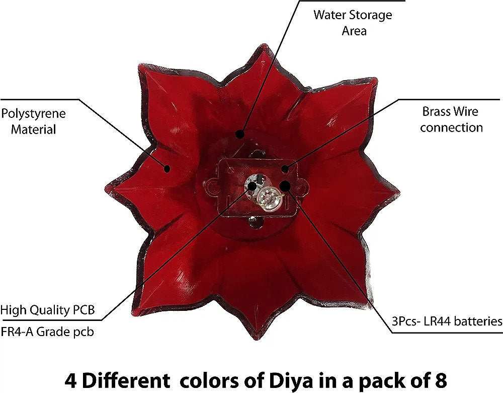 🪔Low Maintenance Lighting: Unlike traditional oil Diyas, these LED versions are hassle-free, requiring no oil, flames, or constant attention. They can be conveniently turned on and off, providing a safe and easy lighting solution that maintains the spirit of traditional Diyas.